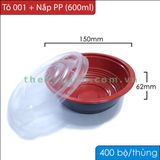 Tô Đỏ Đen 001 + Nắp PP Trong Đựng Phở, Hủ Tíu, Mì, Bún, Súp,...